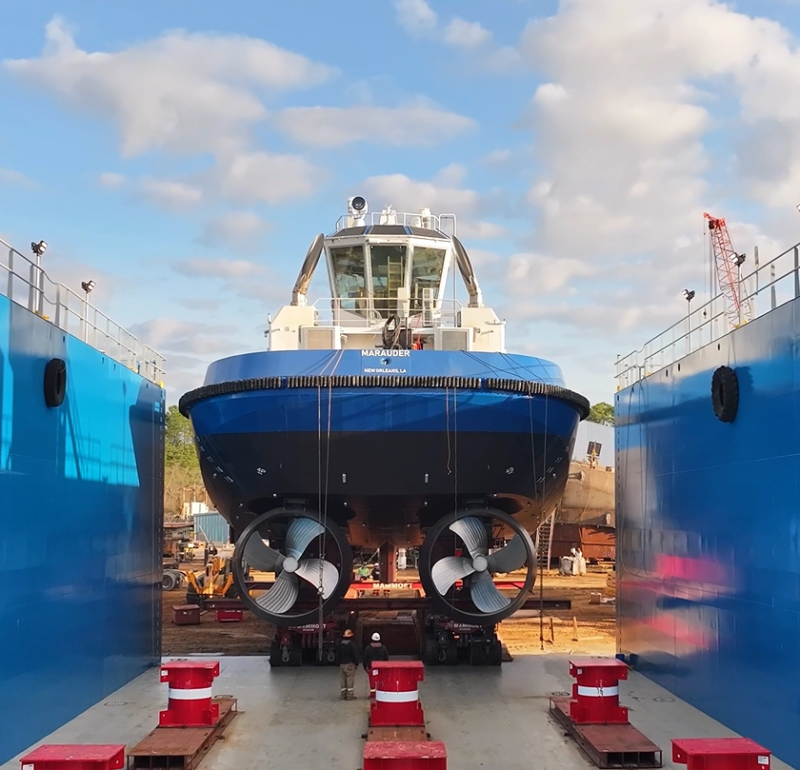 Master Boat Builders, Coden, Ala., recently launched the first in a series of eight harbor tugs being built for Maritime Partners LLC, with delivery targeted for early May. The eight-vessel program is expected to see the yard deliver a tug approximately every six weeks through 2027.