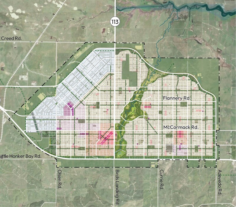 California Forever evolved from Sramek’s interest in the “new urbanism” movement: creating a dense, master-planned, environmentally friendly city with walkable neighborhoods. He promotes the project as an enlightened way to bring long-term and much-needed economic growth to a struggling area while simultaneously enhancing national security.