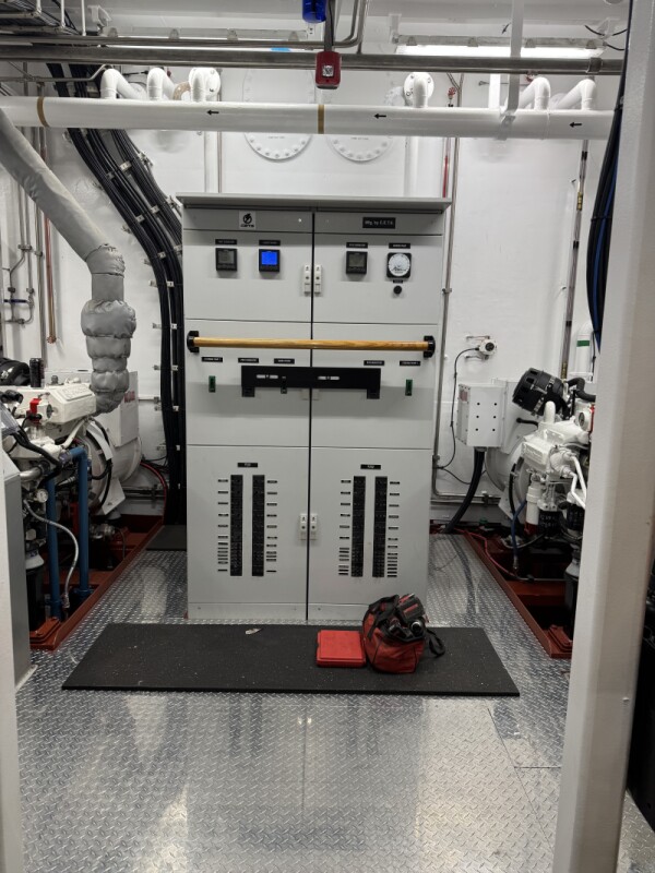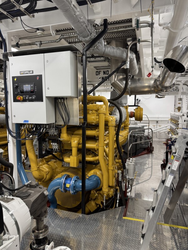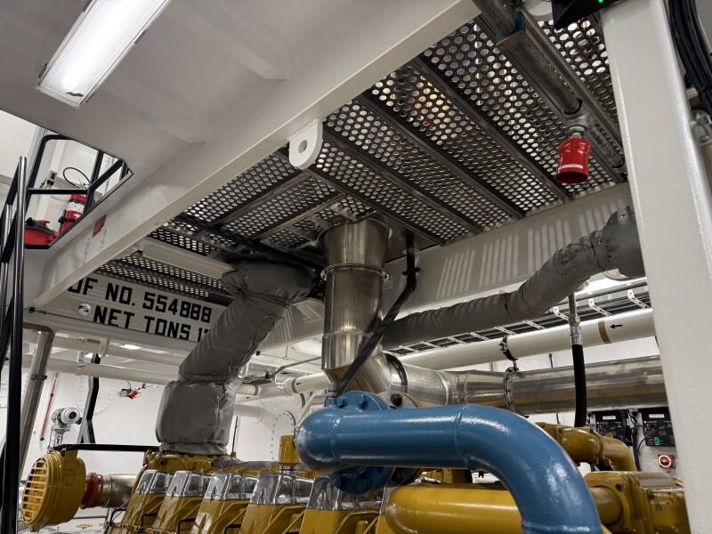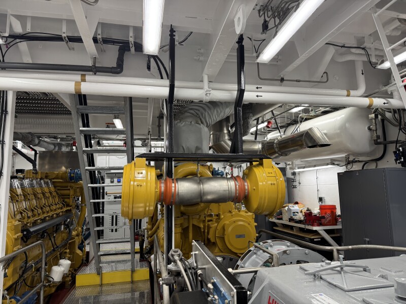 The tug’s twin Caterpillar 3606 main engines were rebuilt rather than replaced. Protzeller said the engines now functionally align with CAT C280-series specifications due to their AutoMaskin electronic control upgrades. “It's the AutoMaskin version of CAT’s C280,” he said. Total main engine output is approximately 5,000 hp. The Lufkin RHSQ2524 reduction gearboxes were retained but fully rebuilt.