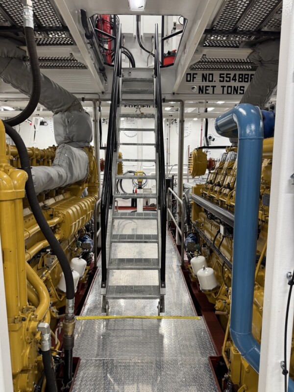 The overhaul included new equipment throughout the vessel, rebuilt main engines and reduction gears, and fully updated hydraulic systems, valves, piping, electronics, wheelhouse, and winches. A key redesign feature allows the tug’s main engines the ability to be removed and installed vertically through the deck, simplifying future maintenance.