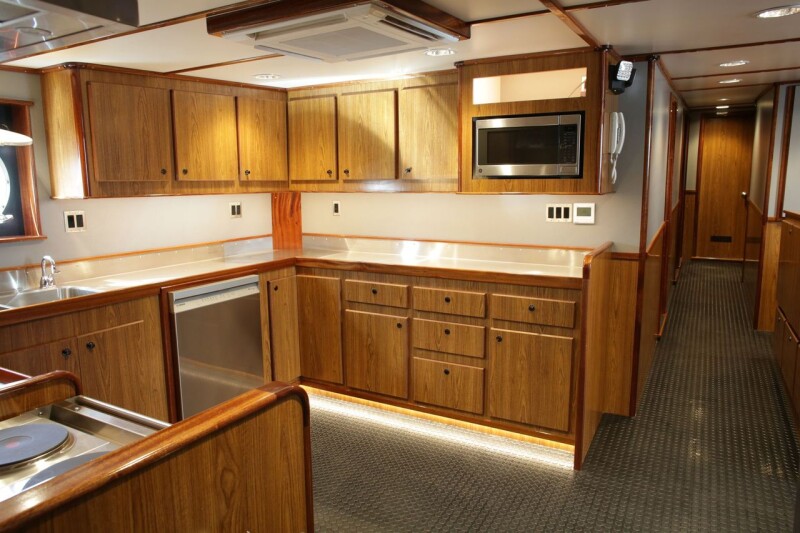 Initial demolition began at Northlake Shipyard, with Stabbert Maritime personnel performing ABS- and Coast Guard-required steel repairs. Interior finish work was completed by Pipes Carpentry of Seattle, a father-and-son team with more than four decades in the trade.