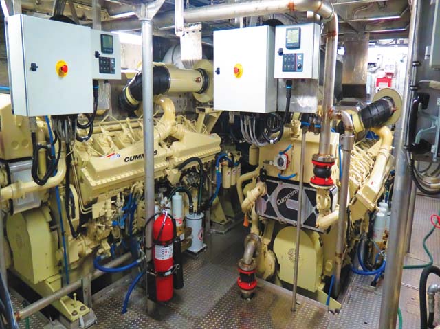 The propulsion package on the FSVs consists of the four MJP 650 waterjets connected to four Cummins QSK50 Tier 3 diesel engines, producing 1,800 hp at 1,900 rpm each, through Twin Disc MGX-6848 marine gears. “We’re going to be burning about 250 gallons per hour and running at 30-plus knots compared to a prop boat that runs at 20 to 21 knots,” said Guillory. “So we think we have an advantage there.”