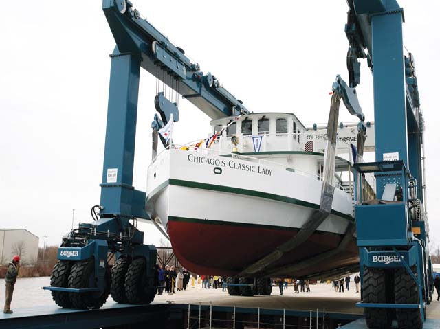 On April 28, Burger Boat Co., Manitowoc, Wis., launched Chicago’s Classic Lady, a 98'×32’×6'2" (draft), Subchapter K, steel passenger boat, built for Chicago’sFirst Lady Cruises. Designed by Seacraft Design, Sturgeon Bay, Wis., the boat has a capacity of 299 passengers. With an open-air upper deck and climate-controlled interior, a carpeted main salon with large arched windows, round tables and upholstered chairs, the vessel will be used for private parties and corporate events as well as cruises for the Chicago Architecture Foundation. Chicago’s Classic Lady is powered by twin Caterpillar C12 main engines and twin Cat C4.4 gensets. Chicago’s Classic Lady is a sistership to Chicago’s Leading Lady built byBurger in 2011. The boat is styled after the luxury cruising yachts of the 1920s such as the former presidential yacht Sequoia.