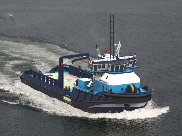 The Harvey Stone will be USCG certified, ABS classed Maltese Cross A1, AMS, Circle E, ACCU, ACP, UWILD, FFV-2, DP-2, Offshore Support Vessel, Notation (DSV Capable, ROV Capable), AH, TOW, SUPPLY, HAB+(WB), ENVIRO, IMO/SOLAS/MARPOL.