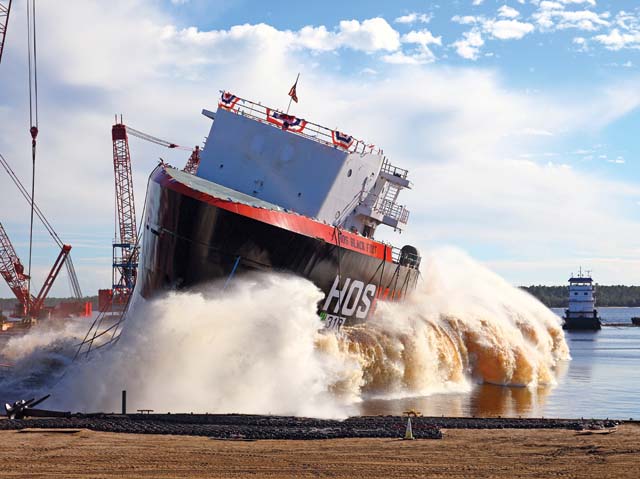 The new OSV’s capacities are impressive and include 54,824 gals. of fuel; 103,035 gals. water (13,460 gals. potable water and 92,328 gals. ballast water that can also be used for potable water needs); 1,700 bbls. liquid mud; 840 gals. lube oil; and 440 gals. hydraulic oil. The rear deck measures 112'×30' and can haul up to 375 LT of freight.