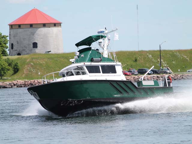 In July, MetalCraft Marine delivered a new aluminum 50'8"×15'10" patrol boat, the Thomas Paine, to the Massachusetts Environmental Police for coastal fisheries enforcement. The boat’s design is based on the Sentry patrol boats, which are a joint venture between Kingston, Ontario-based MetalCraft and Brunswick Commercial and Government Products, Edgewater, Fla.,