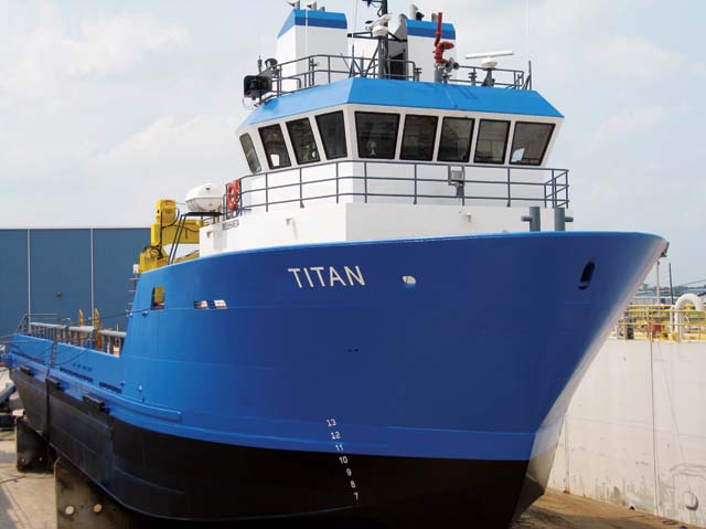 Ocean Marine Services in Kirkland, Wash., had been looking for a vessel for about 18 months when it found the newest member of its five-vessel OSV fleet. The Titan is a 167'×40'×13' mini-supply vessel built in 2001 at Bollinger Shipyards.