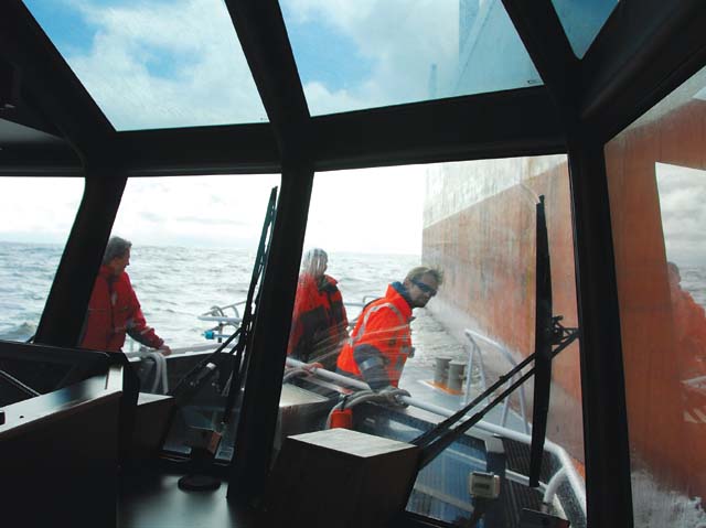 All pilothouse windows, bonded or otherwise, must meet Coast Guard regs for visibility. Only windows facing up or to the side can be tinted. “Coast Guard rules don’t allow for tinted glass in navigation positions,” said Eby.