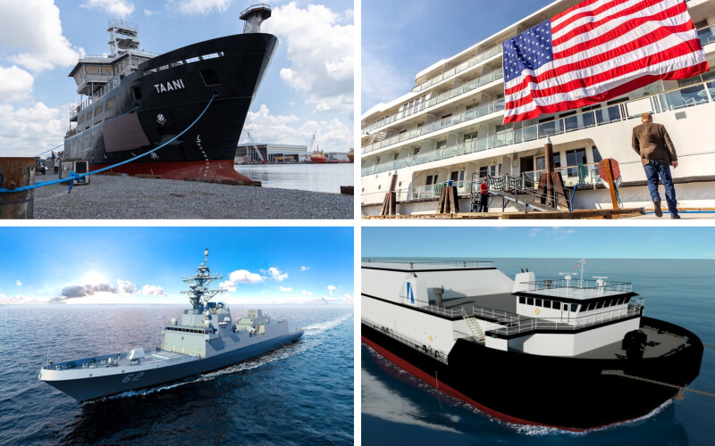 The first of three new oceanographic research vessels was launched in May at Bollinger Shipyards, Houma, La. Construction will be staggered for about six months between each vessel. The 199’6”x41’x19’ Taani is being built as part of a project led by Oregon State University and funded by the U.S. National Science Foundation to provide scientists with valuable new tools to study critical issues such as rapidly changing ocean conditions and human impacts on the marine environment. The vessel will feature a range of over 5,000 nautical miles, with berths for 16 scientists and 13 crew, a cruising speed of 11.5 knots, and a maximum speed of 13 knots. Taani will have a 12'6" draft.