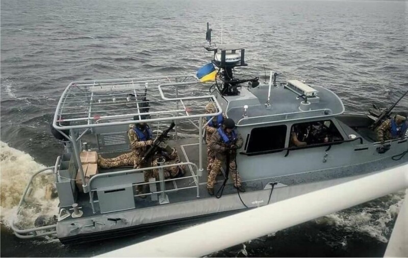Ukrainian military aboard the SeaArk Dauntless 34 patrol boat on the Dnipro River. Военный Осведомитель photo