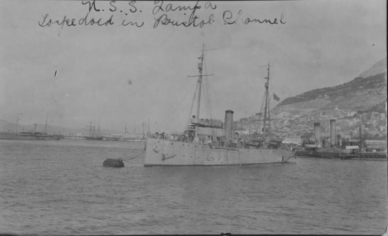 In September 1918 the Tampa and crew were commended for their performance before steaming out for their final convoy escort. On Sept. 26, the Tampa detached from its convoy to replenish its coal and “proceeded full steam ahead towards Milford Haven, Wales, her lights turned off as a security measure. Tampa, sailing alone at dusk, with her silhouette visible against the nighttime sky, was sighted by a German submarine, UB-91.”