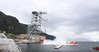 Norsafe’s newly opened training and test center in Rosendal, Norway is capable of performing such unique drop tests. The new tower for free fall boats is 60 meters high and can perform drops up to 40 meters with crew on board. Accordingly, standard training drops utilizing free-fall lifeboats are arranged from 19 meters high.