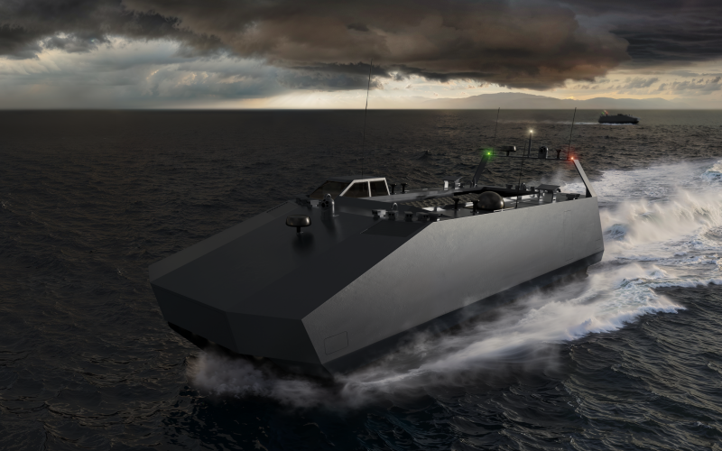 Jardine spoke to the AIRCAT Jaguar model. “Picture a Higgins Boat 2.0 that has a missile defense system on board, and it also has its own remote weapon station and other defensive features. It's crewed with a minimal crew. It has a range of roughly 350 miles at 35 knots and then ultimately top speed of 50 knots… a 50 knot landing shallow draft craft that would be very useful in some scenarios.”