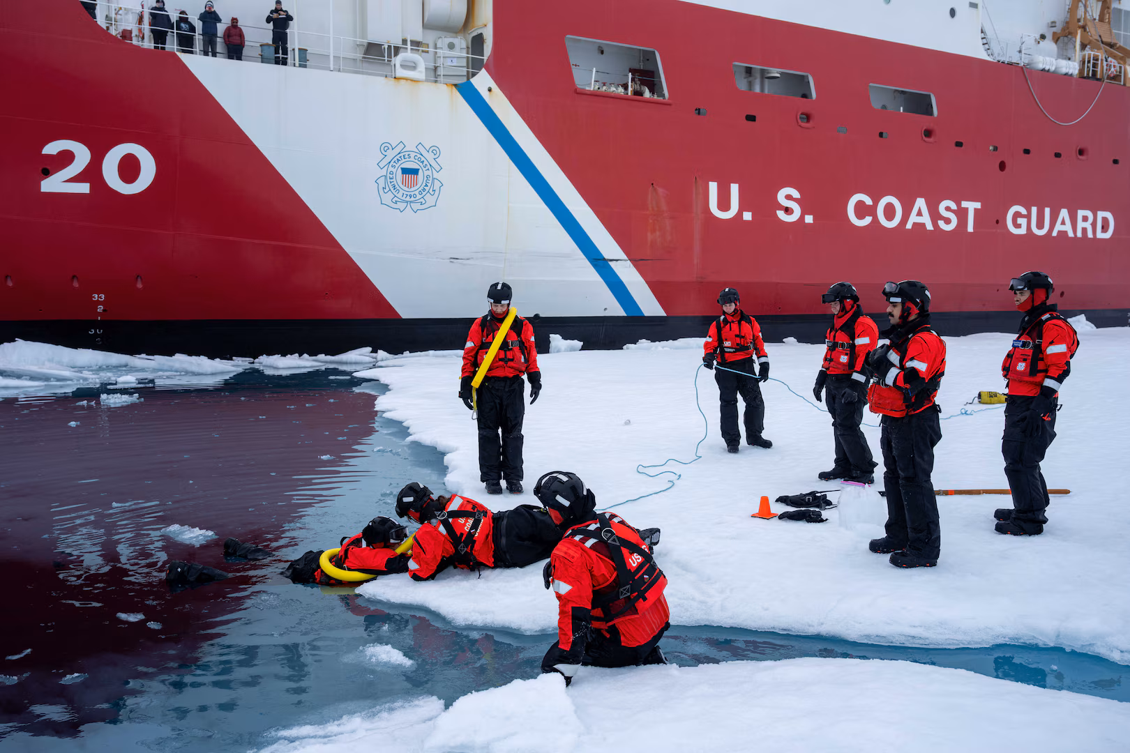 In addition to its research and security missions, Healy diverted from operations to assist communities in Western Alaska following a series of severe storms. The crew supported search and rescue and disaster relief operations as part of the Coast Guard’s Arctic District response.