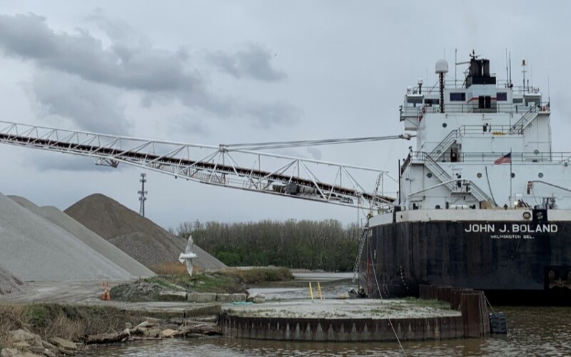 The 13,862 GRT bulk carrier, owned by the American Steamship Company and operated by Grand River Navigation, Inc., was at 620’ Carmeuse Americas dock (also known as the Cedarville dock), located in Port Dolomite, Mich., to load 30,000 tons of aggregate.