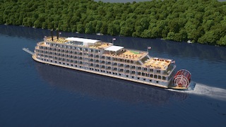 As the new Mississippi River boat, America will have accommodation for up to 185 passengers in oversized staterooms with private balconies on three of five main passenger decks, stacked in the classic 19th-century wedding-cake style.