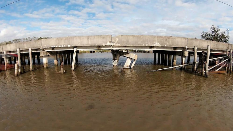 On Dec. 23, 2021, at approximately 3:26 a.m., a towing vessel pushing six barges was traveling southeast along the Avoca Island Cutoff waterway when one of the lead barges in the tow struck the Bayou Ramos Bridge. Coast Guard personnel at Marine Safety Unit Morgan City received notification about damage to the bridge several hours later and identified the responsible party. However, that party was not identified in this report.