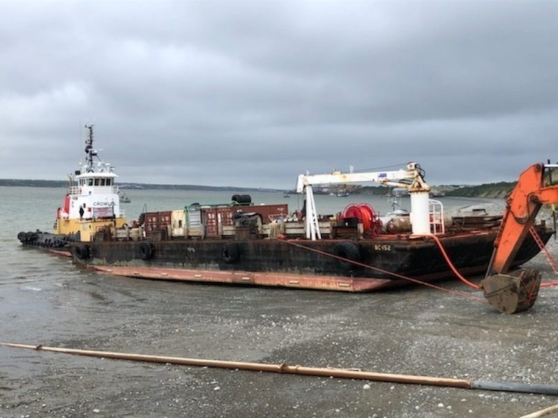 Personnel aboard the Crowley BC-152 barge reported to the Coast Guard at approximately noon Tuesday that the barge had settled in the mud, and that the deck of the barge was showing signs of stress, including a cracked check valve.