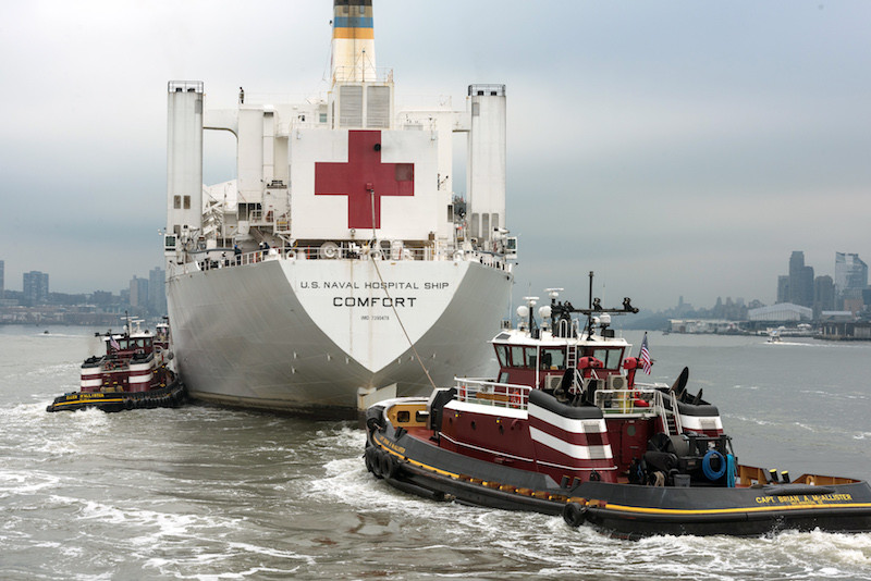 Tug companies along the East and West coasts have also assisted in the arrival and departure of two Navy hospital ships.