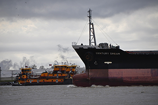 As a result of the breakaway, three deep-draft motor vessels the Marshall Islands-flagged Q Jake, Liberian-flagged Serena P, and the Panamanian-flagged Ocean Tomo sustained damage in collisions. One of the vessels spilled a portion of dry-bulk soy beans into the river.