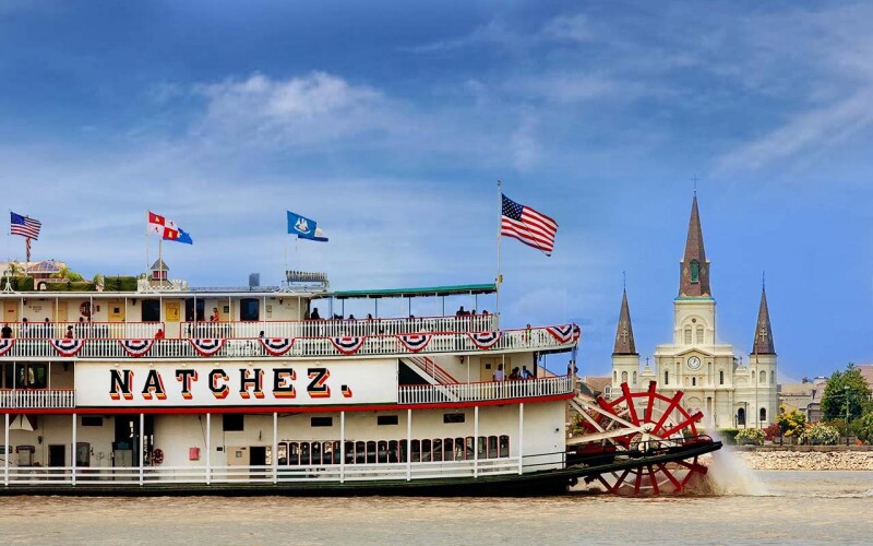 A Mississippi River tow with 24 barges came close to the Natchez riverboat at its New Orleans dock April 28, missing the iconic tourist attraction and the nearby Canal Street Ferry Landing.