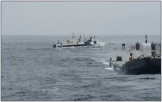 The tank barges Nash and Kenny were fully loaded with liquid magnesium chloride and being towed by the 3,000-hp tug Calvin from Mexico to British Columbia when the Nash began to list noticeably to its starboard side. Listing and trimming by the stern increased over the next six hours, and the U.S. Coast Guard directed the master of the tug to tow the Nash to a nearby anchorage. Shortly after, the Nash sank stern first in 240 feet of water, about three nautical miles west of Point Conception, Calif. About a week after the sinking, a salvage team partially refloated the barge and towed it to its disposal location about 17 nautical miles from shore.
