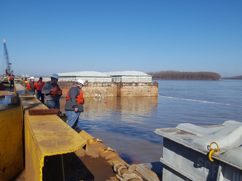 The response effort included the Coast Guard’s Sector Lower Mississippi, Enhanced Environmental and Emergency Services (E3), Clinton, Miss., Budwine & Associates Inc., Covington, La., and Big River Shipbuilders Inc., Vickburg, Miss.