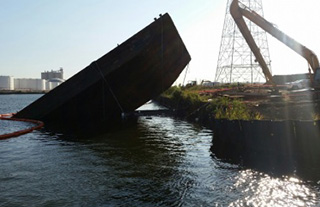 Upon notification of the incident, the Coast Guard restricted the area traffic to one-way. After assessing the situation by boat and helicopter, the agency learned that approximately 20 gallons of diesel fuel leaked from the tug, which was carrying about 300 gallons. The area was boomed off to contain and recover any additional spill while the vessels are being recovered.