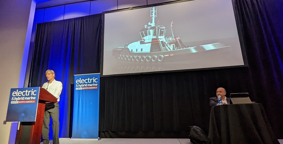 In the "Futureproofing your Fleet: A Low-Carbon Tug Designed for the U.S. Market" session, Dave Lee from ABB and Peter Soles from Glosten took to the stage to detail the SA-100, a dual-fuel hybrid electric tug design that would enable operators to keep costs down.