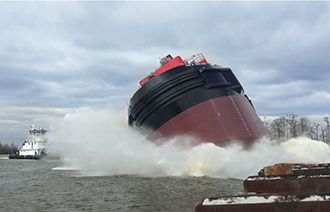 VT Halter Marine launched the tug Kim M. Bouchard, the first of two ATB tugs under a major expansion program for Bouchard Transportation. The launch was held at the Moss Point Marine facility in Escatawpa, Miss., on Feb. 26.