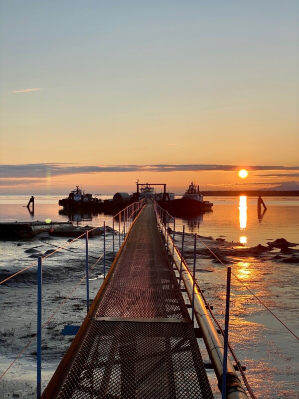 CITB has operated in Anchorage since 1964, later rebuilding the Blue Mile facility in 2012 with new floating configurations. In 2021, the company acquired a flat deck freight barge from local contractor Brice Marine, Fairbanks, and outfitted it with pile clamps and UHMW-type sheathing that allow maintenance or even drydocking when needed. Johnson said that “safety is our number one value. And getting on and off boats is always tricky. Add ice, add currents, add wind, cold temperatures,” he said.