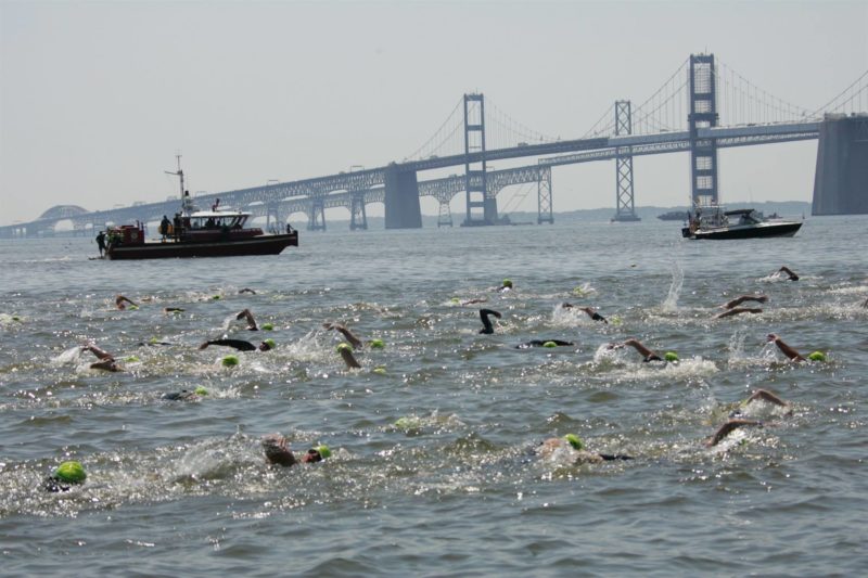The temporary regulated area Sunday spans a narrows on either side of the William P. Lane Jr. Memorial Bridges that carry Highway 50 across the bay. The area will extend 500 yard north and south of each span, from 11 a.m. to 5 p.m. as swimmers make their way from Sandy Point State Park northeast of Annapolis, Md., across 4.4 miles to Kent Island.