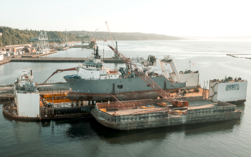 Everett Ship Repair, a subsidiary of Ice Cap Holding and a sister company to Nichols Brothers Boat Builders, boasts a workforce of approximately 100 employees, with plans for expansion. Its 3.5-acre facility features a state-of-the-art fabrication shop spanning 21,000 square feet, along with 1,250 feet of pier and dolphin space, complemented by two dry docks – the Faithful Servant and the Emerald Lifter. The Faithful Servant, a submersible barge with a lifting capacity of 8,000 tons, and the Emerald Lifter, a deck barge providing an additional 2,000-ton lifting capacity, further enhance the shipyard's capabilities.