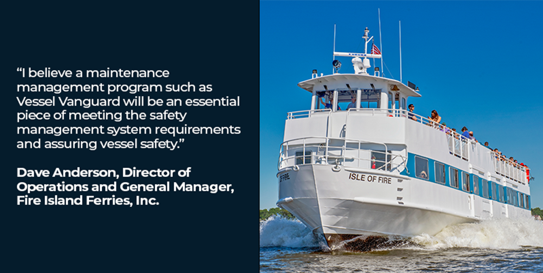 Anderson says, “This safety management system that comes out of this effort could be biggest regulatory product to hit our industry since the rewrite of 46 CFR in 1996—and it will impact every vessel owner. I believe a maintenance management program such as Vessel Vanguard will be an essential piece of meeting the safety management system requirements and assuring vessel safety.”
