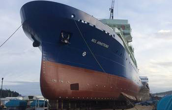 On Feb. 22, the launching ceremony for the Navy oceanographic research vessel Neil Armstrong was held at Dakota Creek Industries in Anacortes, Wash.