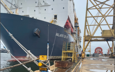 The vessel’s mooring lines were placed on six bollards on the pier at the STEHMO Shipyard. During strong winds of 30-40 knots, one of the bollards broke free at its base and was pulled off the pier into the water. The snapped bollard secured the Valaris DS-16’s four bow lines and a semisubmersible rig’s two stern lines.