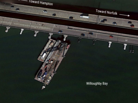 While working on the Hampton Roads Bridge-Tunnel expansion project near Norfolk, Va., on Feb. 8, 2022, an on-board crawler crane fell off the construction barge Carolyn Skaves and into Willoughby Bay. The crane was later recovered and declared an insurance loss of nearly $2 million. There were no injuries, but an oil sheen was visible on the water.