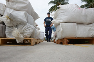 Illustrating a blockbuster summer of drug seizures in the Caribbean Sea, the Coast Guard offloaded approximately 1,100 kg of cocaine and 4,420 lbs. of marijuana with an estimated wholesale value of $41 million at Coast Guard Base Miami Beach on Tuesday. The dugs were seized in three separate interdictions as part of Operation Martillo and Unified Resolve.