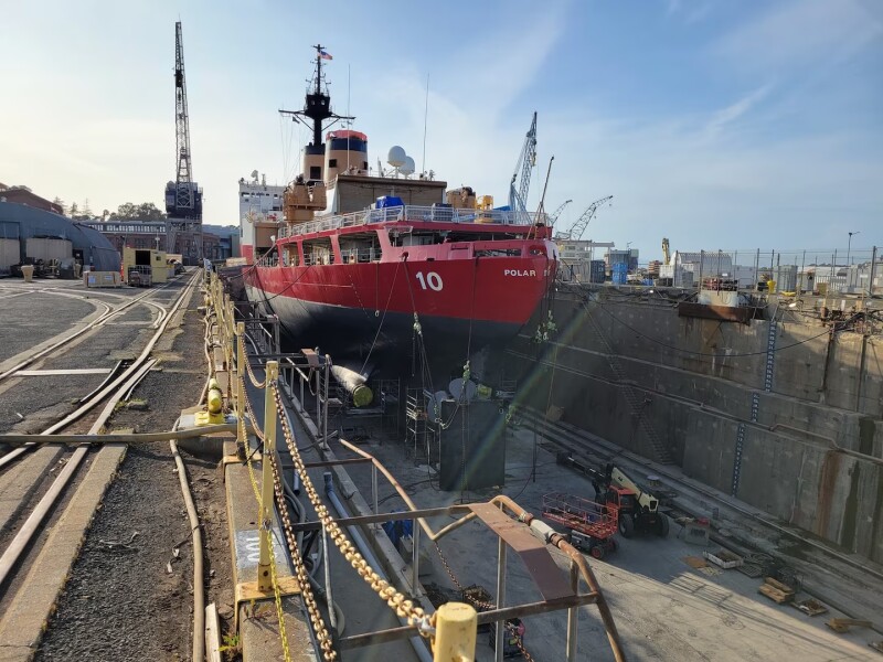 The Coast Guard’s 399’ heavy icebreaker Polar Star returned after 308 days and the annual Operation Deep Freeze (ODF) 2025 science support mission to put into the Mare Island Dry Dock in Vallejo, Calif., to complete the final year of a five-year Service Life Extension Program.