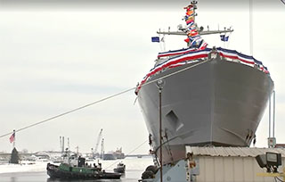 SPLASH! Watch the U.S. Navy littoral combat ship Sioux City take an early polar bear plunge into the icy Menominee River. The christening and launch brings the future USS Sioux City one step closer to joining the fleet! lmt.co/1OXUgA3