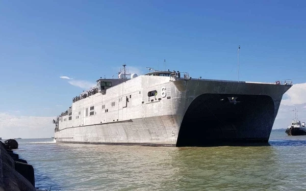 The ships are used for expedited transportation of cargo, equipment, and personnel. The 338’x96.5’x12.5’ catamaran is equipped to handle specialized missions, pre-position combat supplies at sea, and dock at impaired or damaged ports as necessary.
