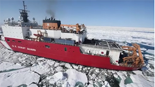 The U.S. Coast Guard cutter Healy as seen from a helicopter during a July 14 search and rescue exercise in Arctic waters. The 420’x82’x29’3” Healy, one of only two operational U.S. icebreakers, is on a scientific research mission this summer, at a time when renewed attention is focused on America’s Arctic maritime needs. A bill in Congress would create a fund to build six new heavy icebreakers. U.S. Coast Guard video by Petty Officer 2nd Class Grant DeVuyst.