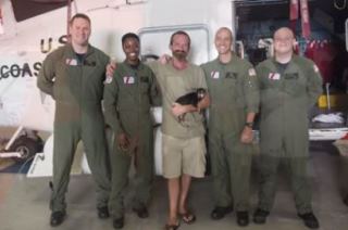 A Georgia sailor and his dog meet with the air crew who plucked them from the Gulf of Mexico 70 miles offshore.