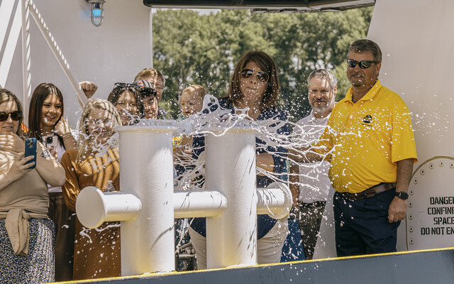 The vessel honors Jerry Long, Ingram’s director of engineering projects. Long started as a deckhand aboard the Eileen Bigelow in 1990 and worked his way up to chief engineer before taking on shoreside responsibilities overseeing vessel repowers, engine overhauls, and other engineering initiatives.