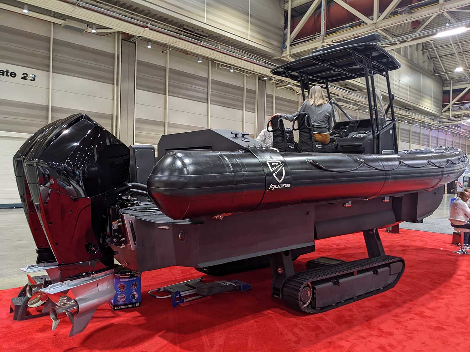 Iguana Pro USA provides High-speed Amphibious Vessels designed for Surveillance, Interception, and Rescue Missions on Land and at Sea. Their mobility system allows the vessel to drive on land and water, it provides fast maritime travel speeds with high-horsepower gasoline outboard engines and rapid switchover to continuous-track landing gear powered by electric engines.