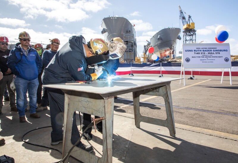 Shipbuilder General Dynamics NASSCO, San Diego, on Friday hosted a keel-laying ceremony for the future USNS Ruth Bader Ginsburg (T-AO 212).