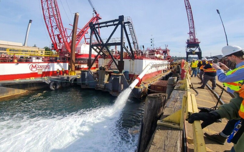 The dredge was towed to their Seattle yard, where Manson’s yard crew and marine equipment team removed the main pump, A.C. wound rotor motor, and liquid rheostat. A LinkedIn post from the company noted that the crew then installed the latest dredge pump and dredge pump drive technology.