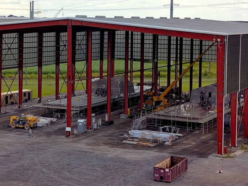 Williams displayed a rendering of a planned 400,000-sq.-ft. shipbuilding hangar superimposed on an aerial photo of Senesco’s property. If the shipyard were to secure a substantial DoD contract, the proposed facility could support a dozen production lines, he said, each stacked three vessels deep, moving steadily through construction.