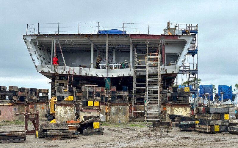 Eastern Shipbuilding Group Inc. (ESG) is building a new 302' passenger/vehicle ferry “long Island” for the Bridgeport & Port Jefferson Steamboat Co. (B&PJF) at its Allanton Shipyard in Panama City, Fla. The new ferry, scheduled for delivery in 2024, will serve the route between Bridgeport, Conn., and Port Jefferson on New York’s Long Island. This new vehicle/passenger ferry will join the existing fleet and provide service across Long Island Sound.