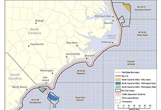 The Bureau of Ocean Energy Management (BOEM) has completed an environmental review that clears the way for the agency to move forward with its process for considering a renewable energy lease sale offshore North Carolina.